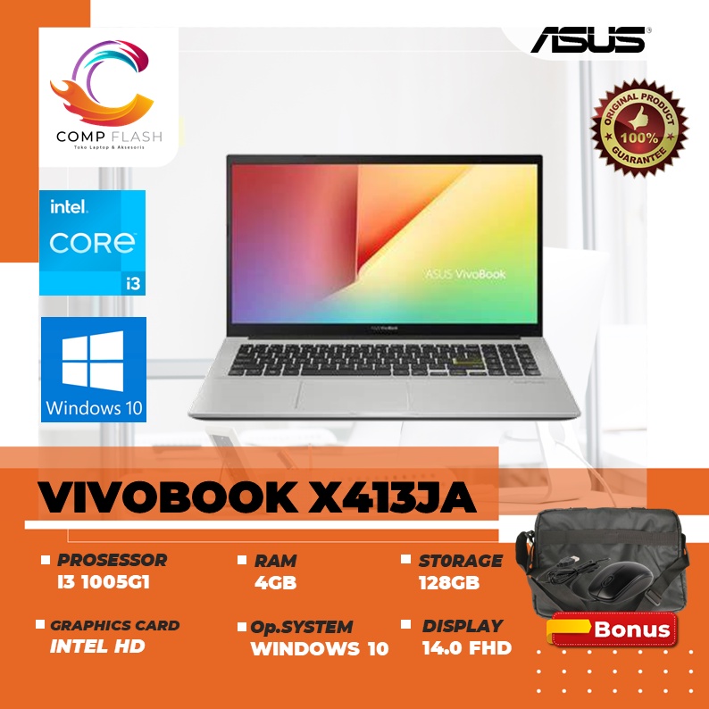 Kelebihan membeli Laptop MURAH ASUS VIVOBOOK X413JA i3 1005G1 4GB 128GB SSD W10 14.0FHD